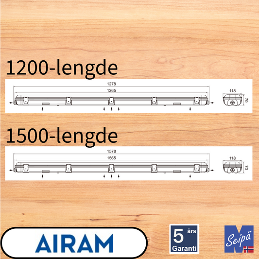 AIRAM INDUPROOF 1200 LED IP65 PC industri, gjennomkablet, 19W/24W/30W/35W PÅ/AV Art nr 4338605 ELNR 3320180