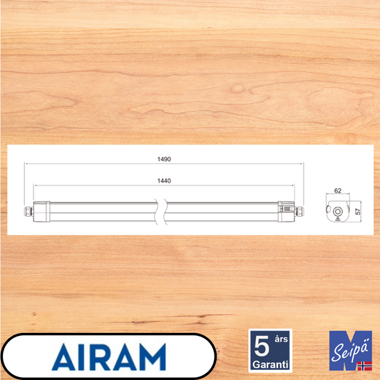 AIRAM INDUPROOF 1500 LED IP65 PC industri, gjennomkablet, 26W/33W/38W/45W PÅ/AV Art nr 4338606 ELNR 3320181